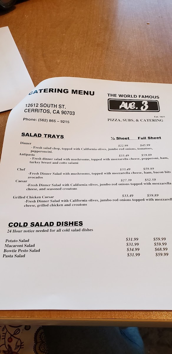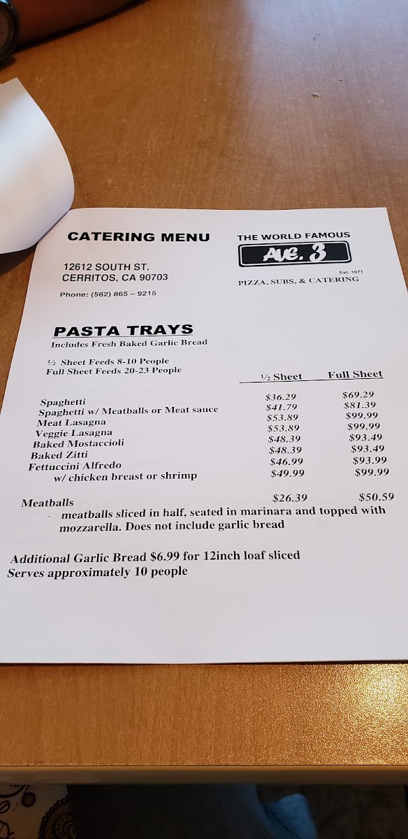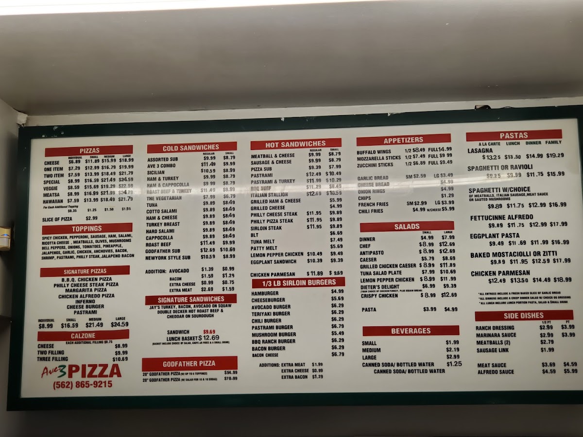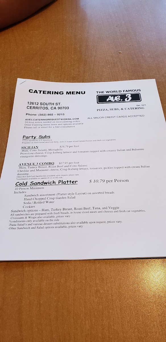 Welcome to Avenue 3 Pizza Subs & Catering, where every bite beckons you to savor the delightful flavors of classic Italian-American cuisine nestled in the heart of Cerritos, California. Located at 12612 South St, this charming pizzeria and sandwich shop is an iconic stop for both local residents and visitors alike, boasting a cozy atmosphere perfect for a casual lunch or dinner.